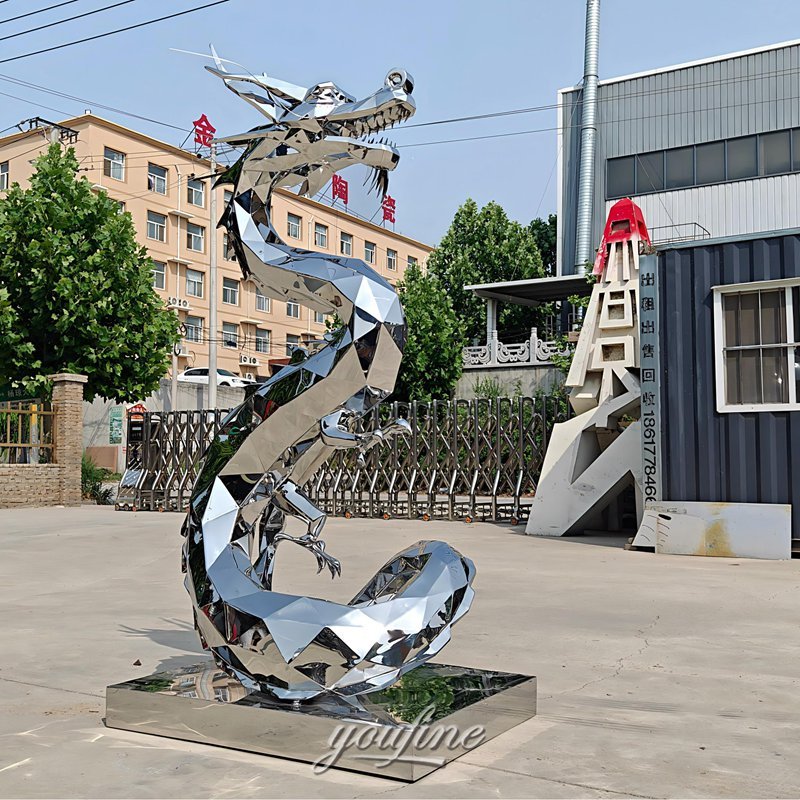 Outdoor Mirror Polished Stainless Steel Oriental Dragon Sculpture
