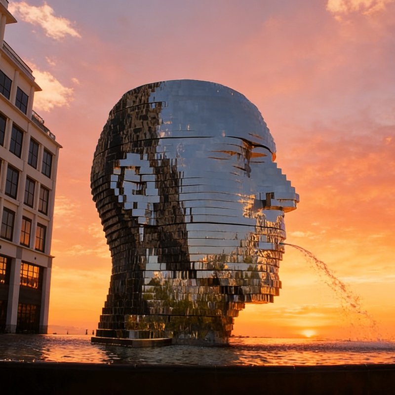 When I look at METALmorphosis, I do not simply see a rotating steel head. I see a mind in motion—thoughts shifting, identity breaking apart, and order being rebuilt again and again. Its eerie, mechanical transformation makes it one of the most unforgettable stainless steel sculptures on this list.
