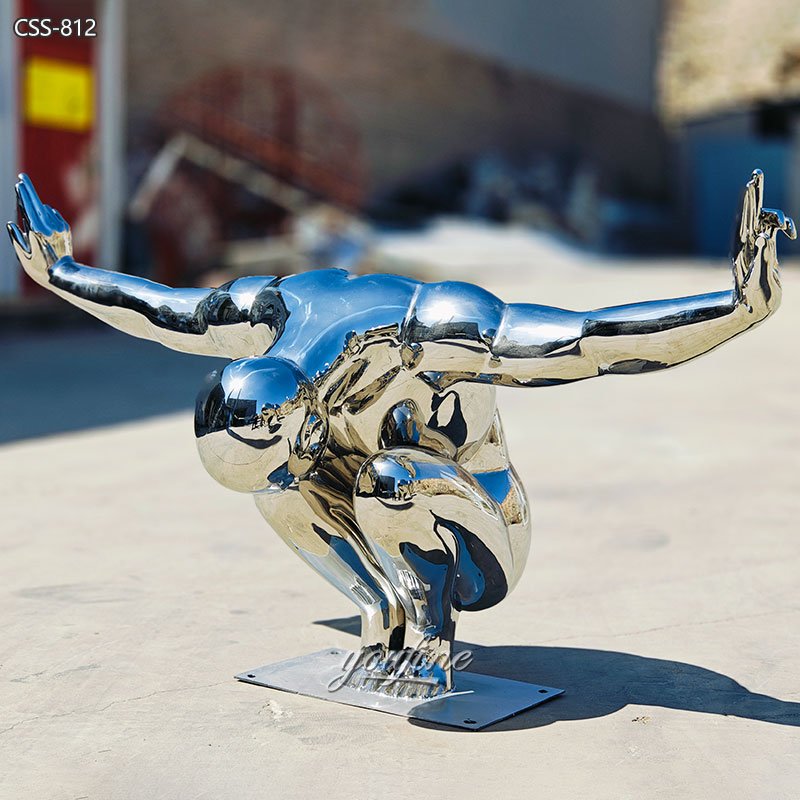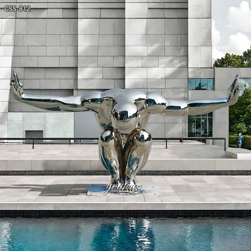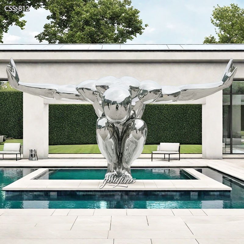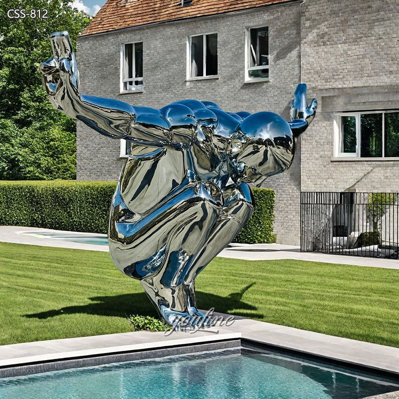 Stainless steel has a variety of surface treatments, such as polishing, painting, plating, etc. Different treatments have different color effects, you can choose according to your preferences. The size of this diving statue can be adjusted according to the size of your space. Our designers can provide you with renderings based on your venue to help you determine the appropriate color and size.