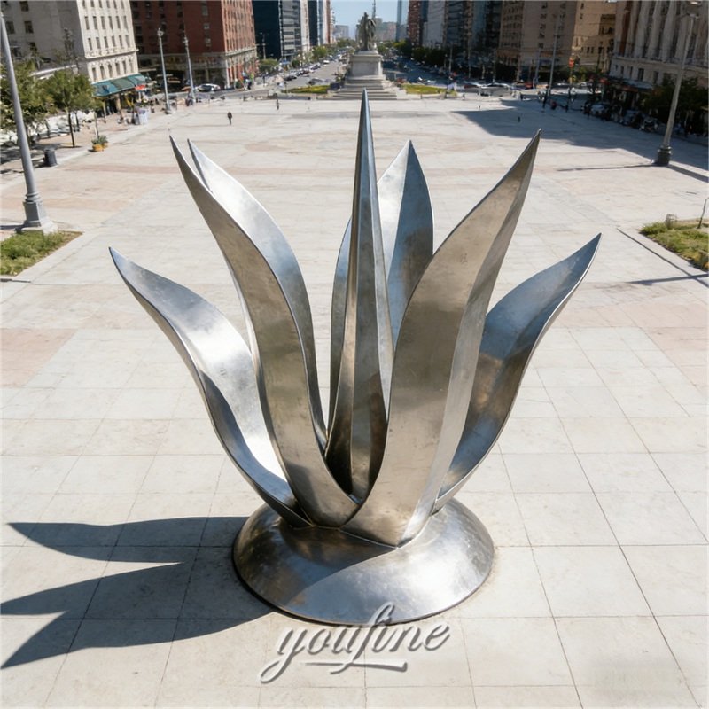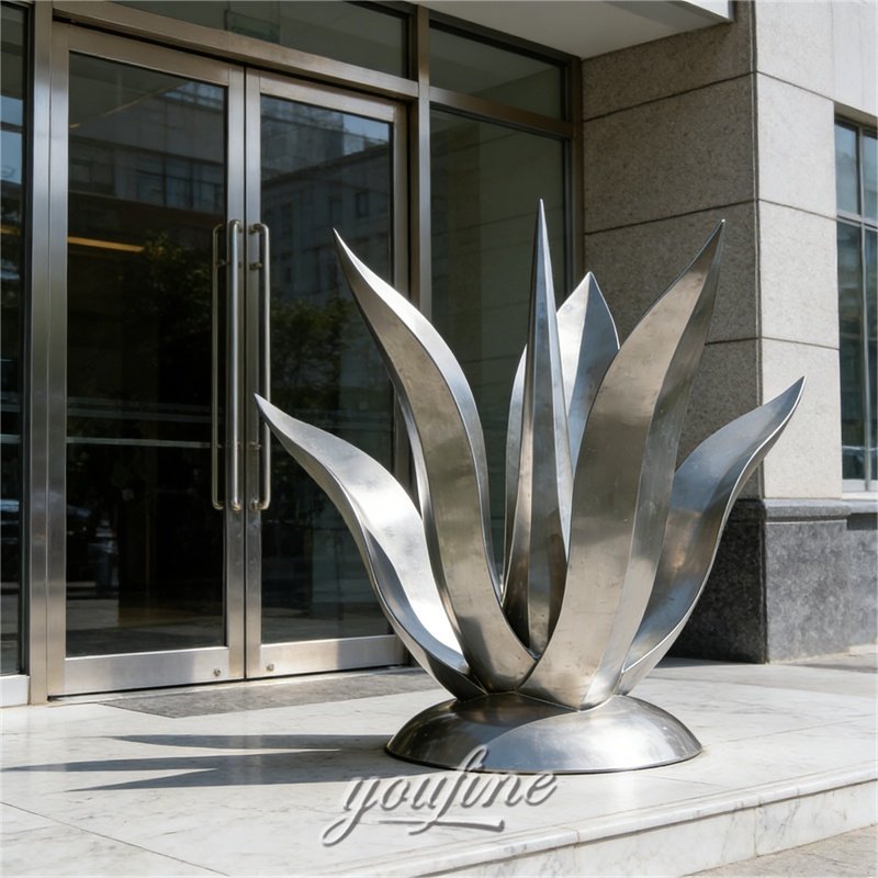 This metal agave sculpture is made from 304L or 316L stainless steel, which is widely used for outdoor metal artworks because of its durability and corrosion with clean modern appearance.