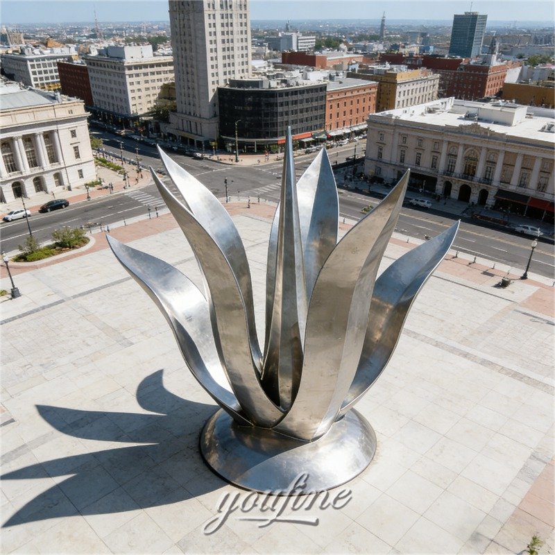 What’s more ,Stainless steel is highly suitable for custom sculpture production because it can be bend, forged, shaped, welded, and polished with precision. This allows our factory’s artists to recreate the natural rhythm of agave leaves in a clean and dynamic metal form.