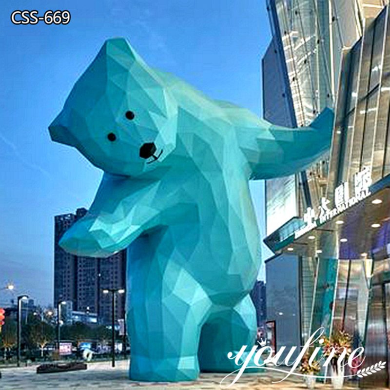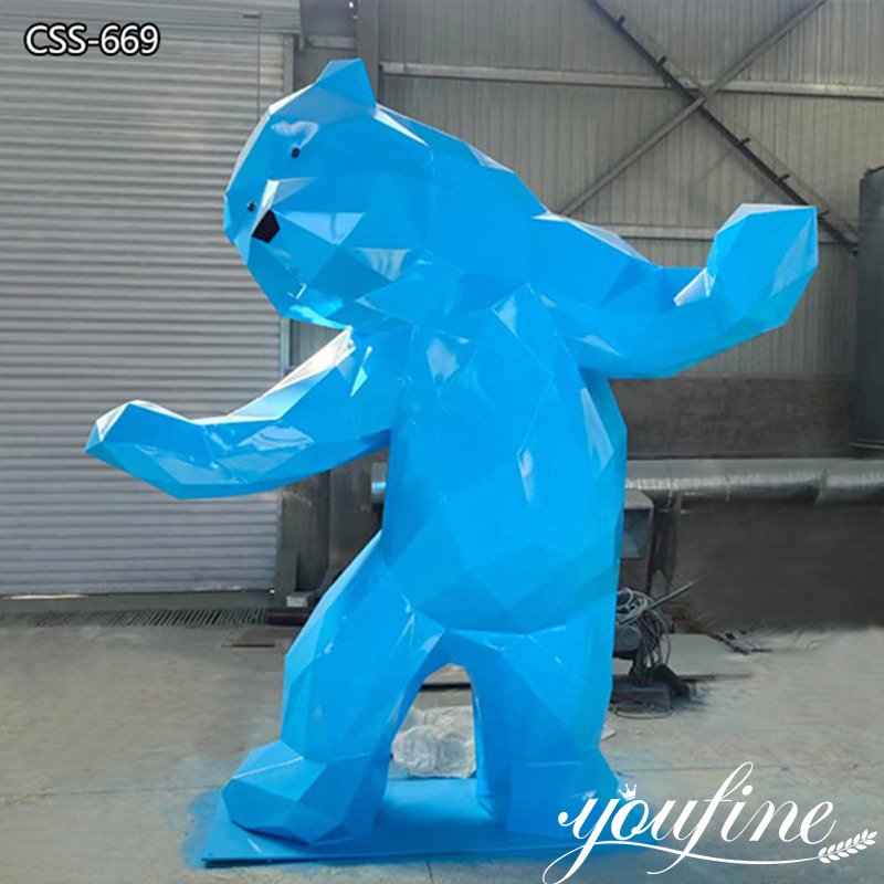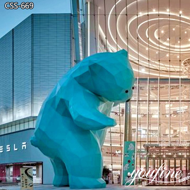 This large blue stainless steel bear is quite an attractive sculpture with its unique geometric design and bright color. The bright blue color makes the entire sculpture undoubtedly the focal point of the street, adding extraordinary fantasy and fun to the bustling street. There is not much extra decoration on this sculpture, but it is attractive enough to catch the attention of passersby.