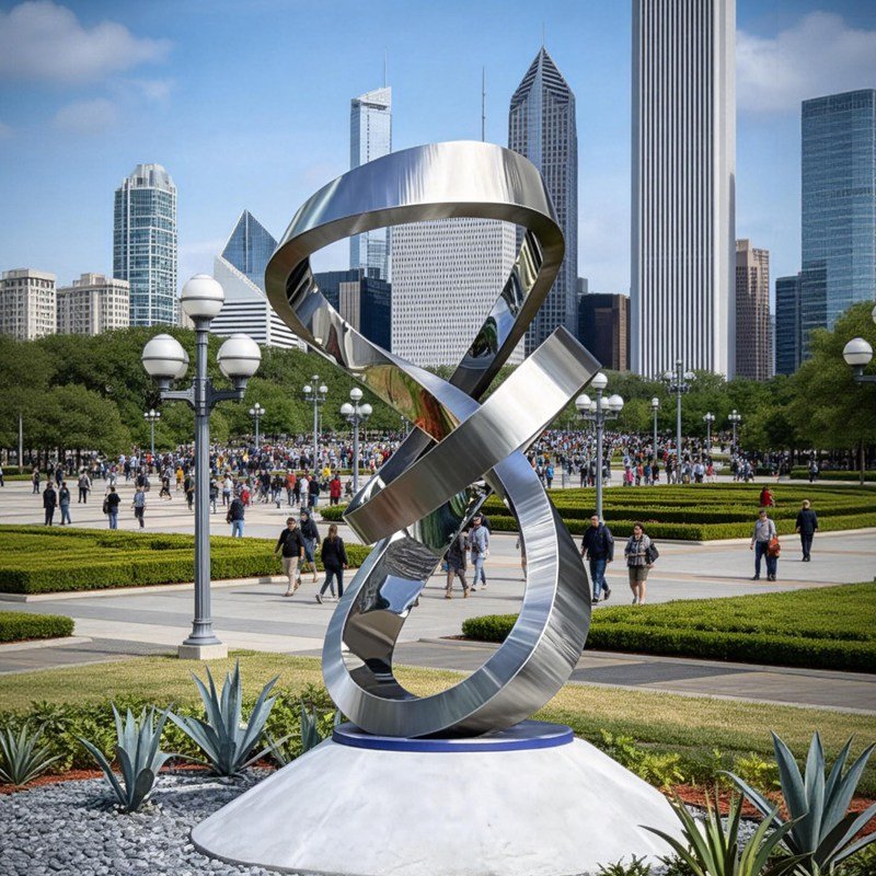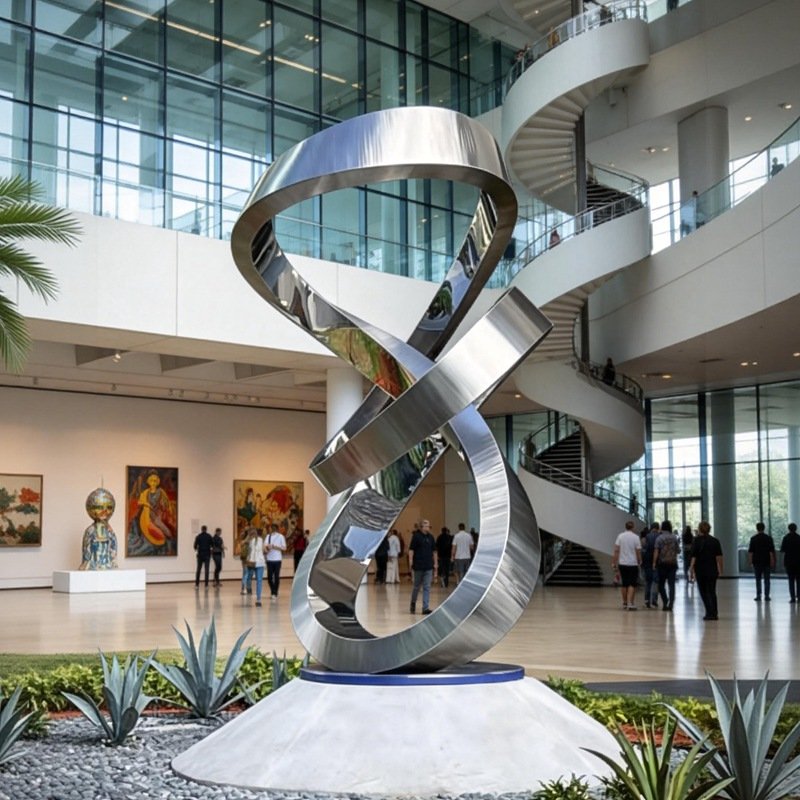 This abstract stainless steel statue draws inspiration from the Möbius strip and the infinity symbol(∞). Using clean geometric lines, it evokes the eternity of life and the limitless possibilities of life’s journey.