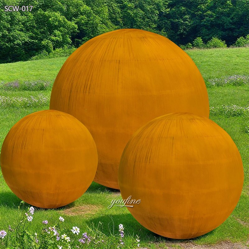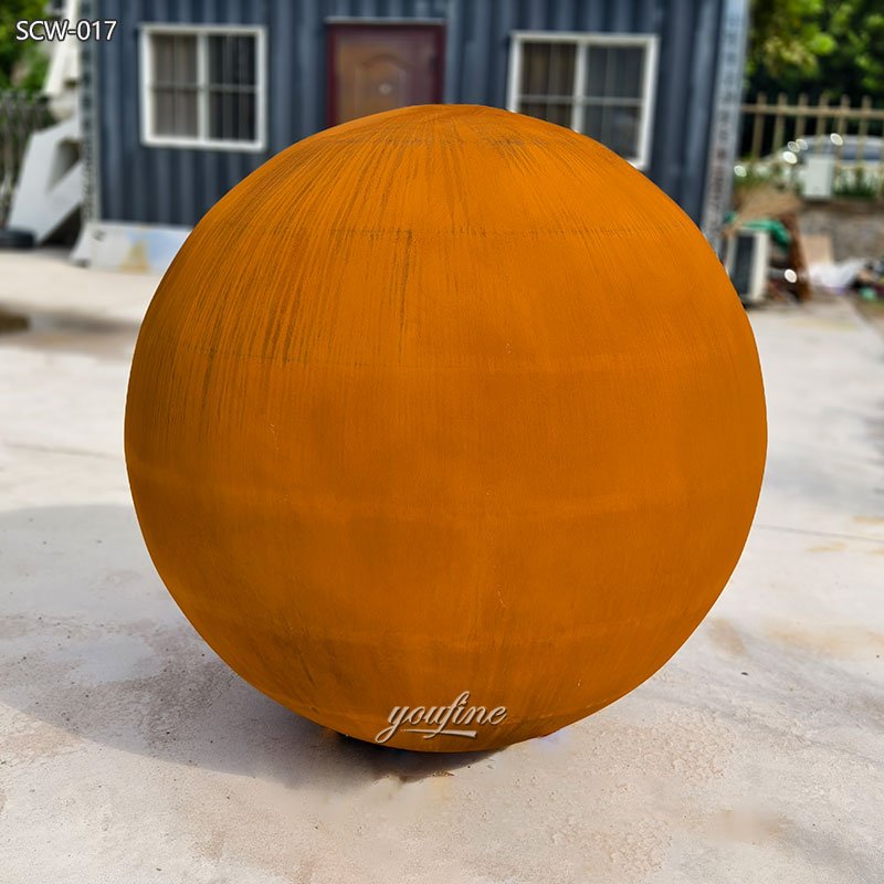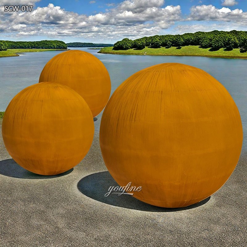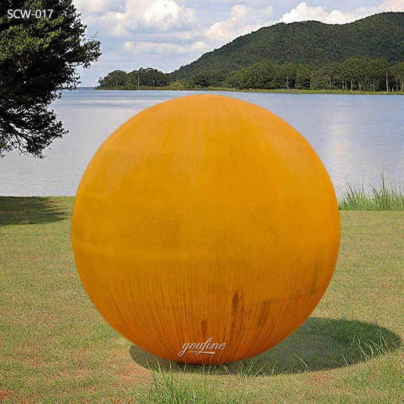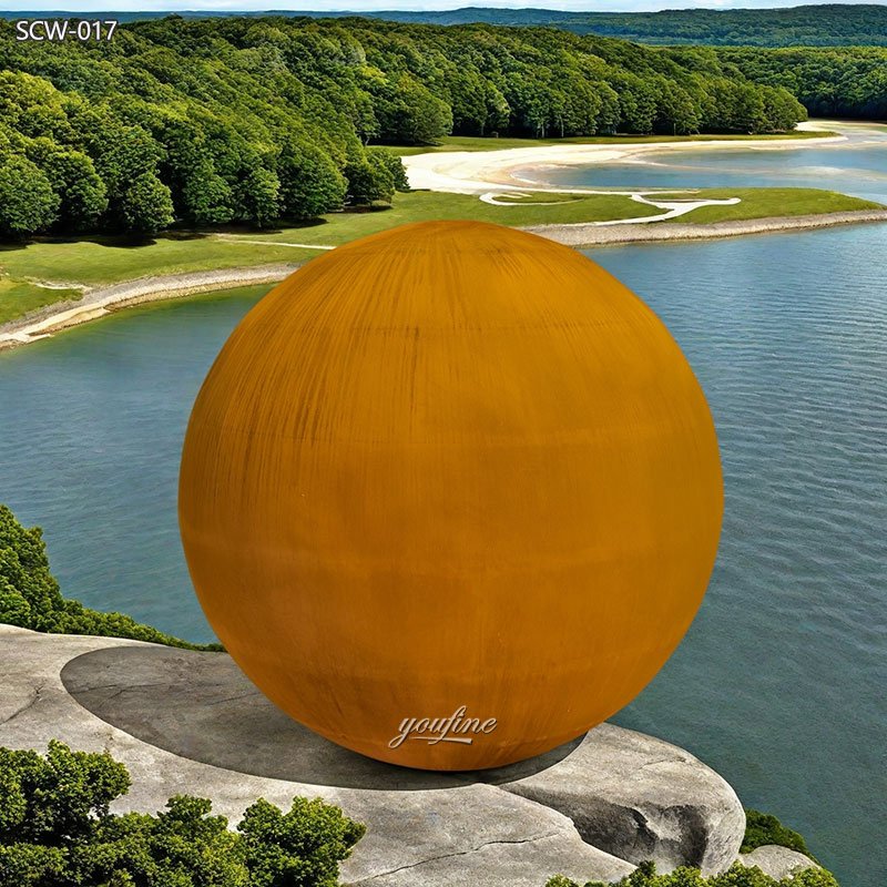 The simple sphere is suitable for any outdoor setting, blending seamlessly into natural surroundings like grass, trees, and lakes, enhancing the overall aesthetic. The sculpture is producted of corten steel, whose unique color, imbued with artistic flair, adds to its allure. At the same time, the rust layer on the surface further protects against corrosion, extending the sculpture’s service life. Furthermore, the color of the weathering steel changes with time, enhancing its unique character.