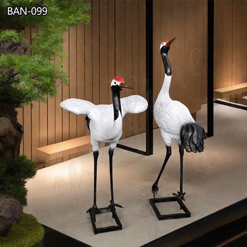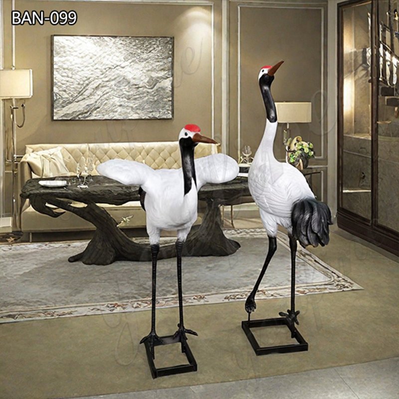 These two bronze crane sculptures are very exquisite decorations for indoor and outdoor places. Placing them outdoors, they can blend perfectly with the surrounding natural environment; placed indoors, they can incorporate the natural atmosphere into the interior space art. No matter where placed, they are perfect ornaments to increase the beauty of the space.
