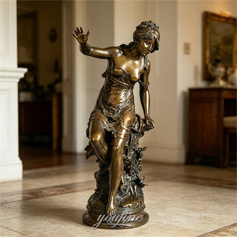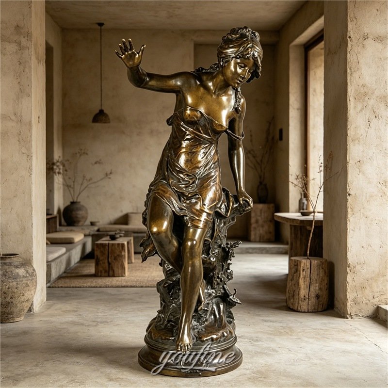 With its graceful figure, refined patina, and classical decorative appeal, this life-size bronze nymph statue is especially suitable for interior spaces such as villa foyers, hotel lobbies, art galleries, luxury residences, reception halls, clubs, and elegant commercial interiors. It serves as a striking focal point that enhances the artistic atmosphere of the space while conveying sophistication, culture, and timeless beauty.