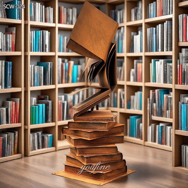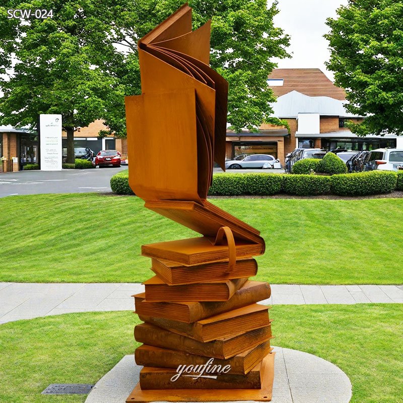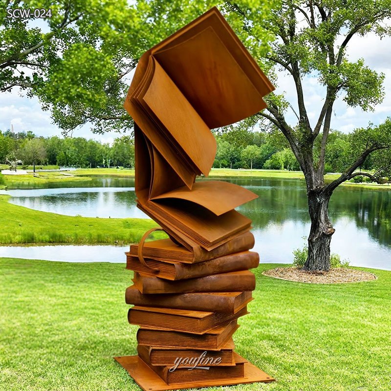 This corten book sculpture is more than just a decorative piece. It is a call to action for reading and gaining knowledge. Placed in a library or museum, it serves as a spiritual symbol, echoing the theme of knowledge inheritance. In cultural parks and art galleries, it enhances the space’s style and creates an elegant atmosphere. It can also be placed in a courtyard or study, showcasing the owner’s cultural prowess and instilling a learning atmosphere in the home. Put it in school to create an atmosphere of learning knowledge and motivate students to study hard.