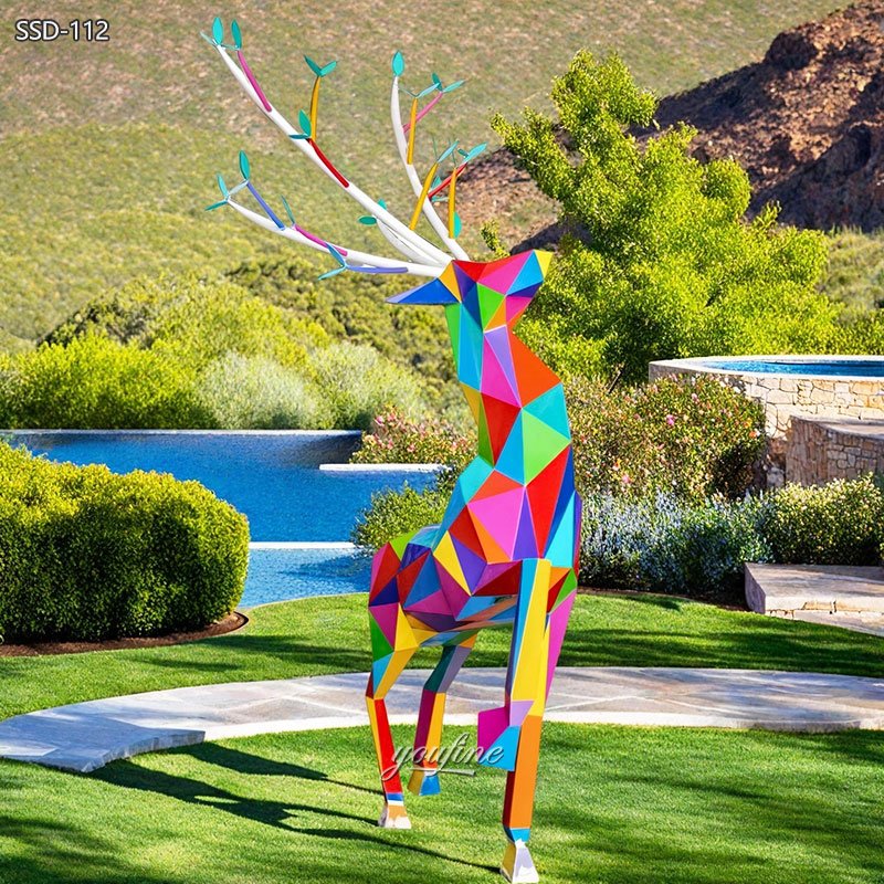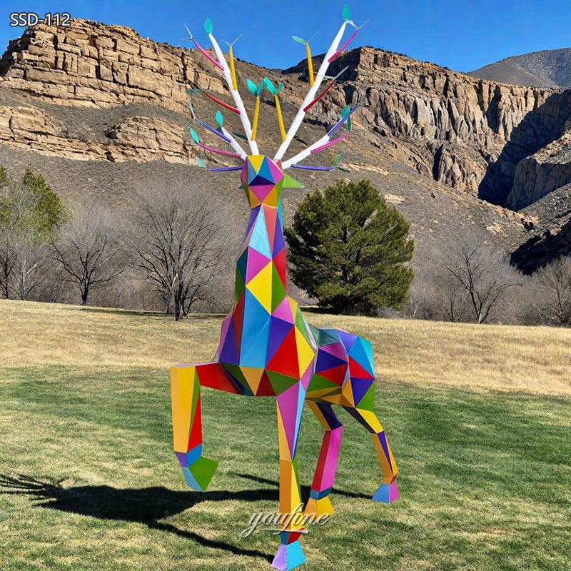 Deer sculptures are the star product of YouFine and are very popular. Our metal deer have various designs. In addition to this colorful geometric deer sculpture, YouFine also has other designs of geometric deer sculptures.